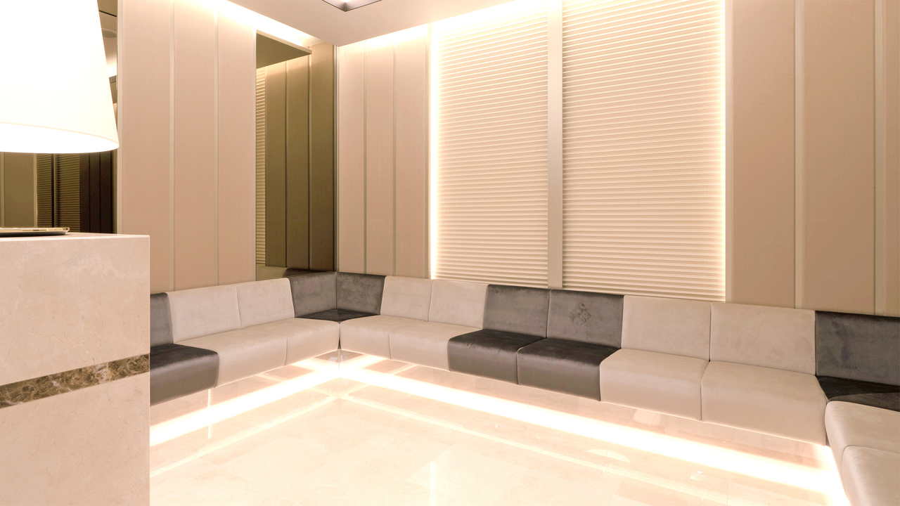 待合室は、まるでホテルにいるようなリラックス空間です。こだわりのインテリアで統一され、高級ホテルと同じ香りが漂います。